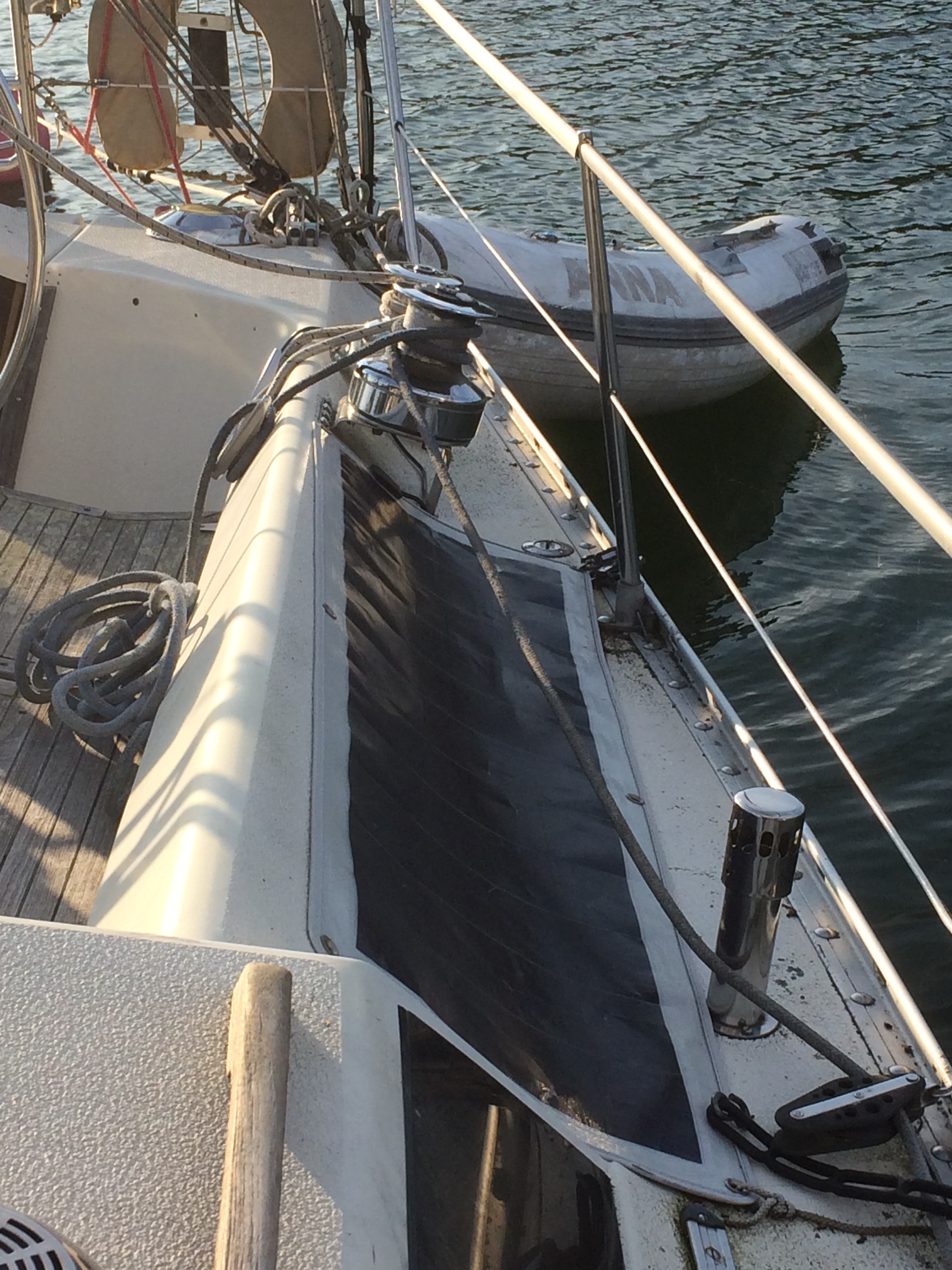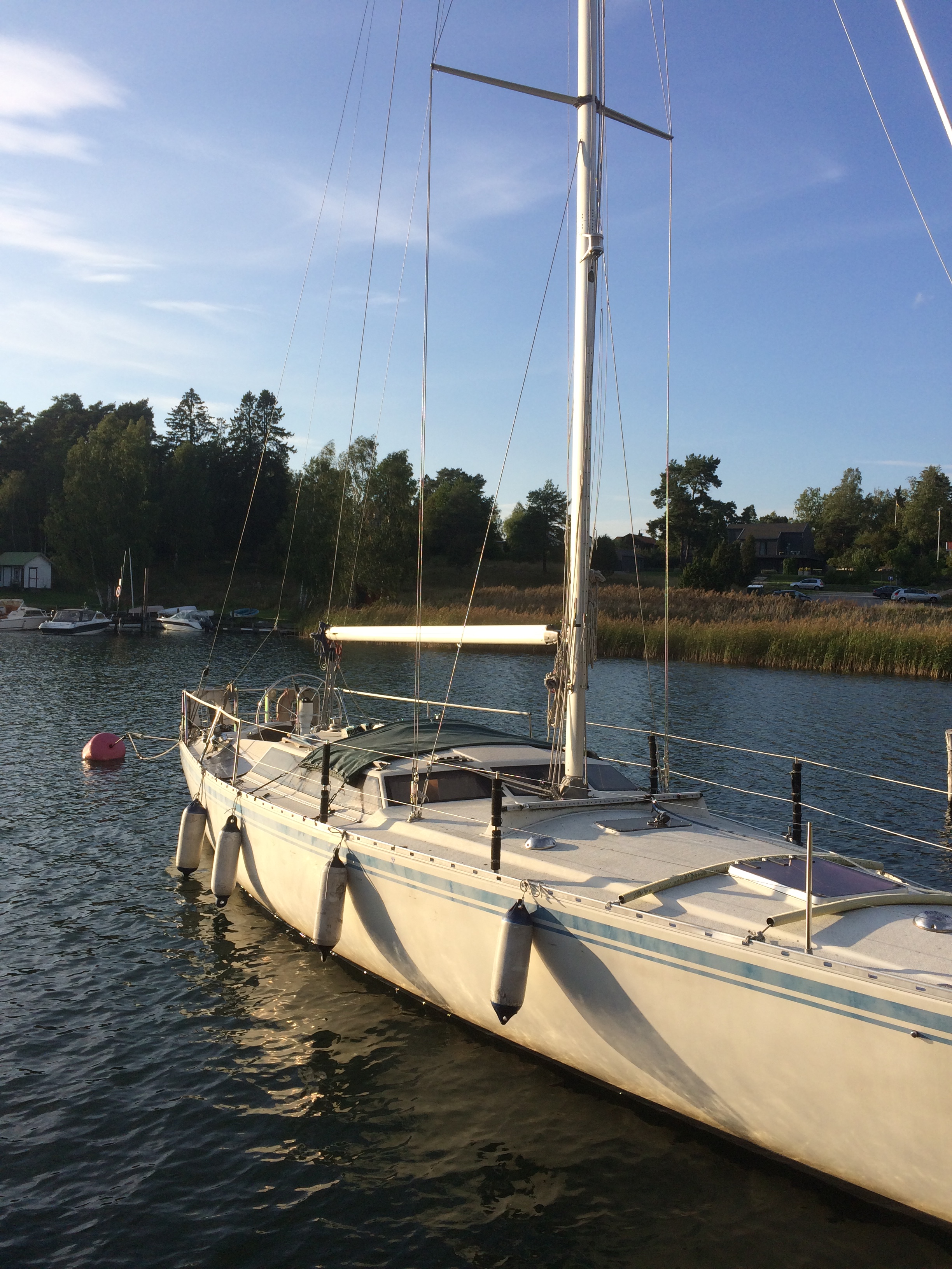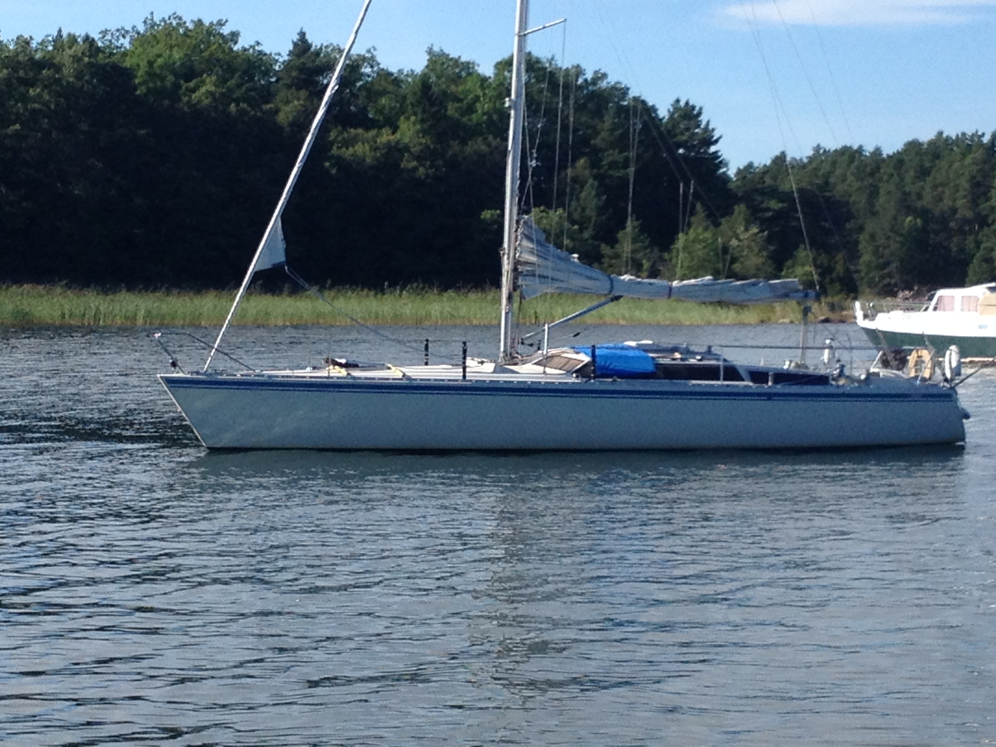 74 kvm 7/8 rigg. Lättvindsgenua, fullattestor, spinnaker, självslående fock, och stormfock. Lättskött och lätthanterlig samt välbalanserad. Jag seglar den själv. Seglar mycket bra på enbart storen om man så vill.